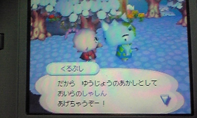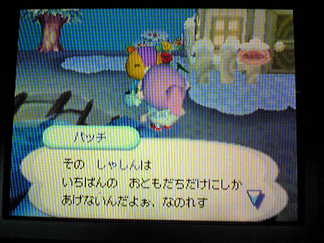 その後、村に新しい家が建っていたので(さるお家跡地)行ってみたら、娘のDSとDS同士通信したときに来たらしいツバクロでした。あれ?見たことあるなぁ~と思ってたんだけど、最初に話しかけたときに○○村から来た~という話がなかったので新規なのかな~って思ったの。したら昨日、こんな手紙もらった~と見せてもらったら手紙主が子供のキャラだった・・・w