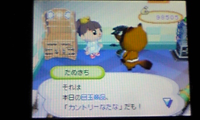 ワンピース村とまかい村のカブの買値が100ベルを越えてたので、いつ高騰するかな~と楽しみもありつつ左記にたぬきちのところへ。